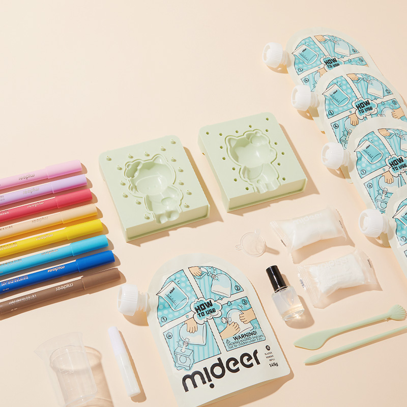 En el taller de los jóvenes creadores, las ideas aparecen más rápido de lo que el yeso puede endurecer. Por eso mideer ha preparado un yeso en polvo adicional como complemento, para que cada nueva muñequita pueda pasar de la imaginación directamente al molde. Solo hay que preparar la mezcla y verter una nueva figura, lista para decorar con las técnicas favoritas. Es una forma de prolongar el juego creativo y desarrollar habilidades que refuerzan la seguridad de los pequeños artistas.