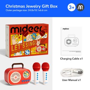 Antes de que las grandes estrellas pisaran los grandes escenarios, primero cantaban en casa: al cepillo, a sus juguetes y luego a su primer micrófono. Con el set de karaoke de mideer los niños pueden empezar exactamente igual, pero con una presentación un poco más profesional. Al poner la música, el salón se convierte en un pequeño escenario y los dos micrófonos inalámbricos permiten cantar en solitario o a dúo. Los efectos de cambio de voz añaden humor a cada actuación: a veces suena como un personaje de dibujo animado, otras como un monstruito divertido. Es un juego que desarrolla el oído, la confianza en uno mismo y la creatividad.